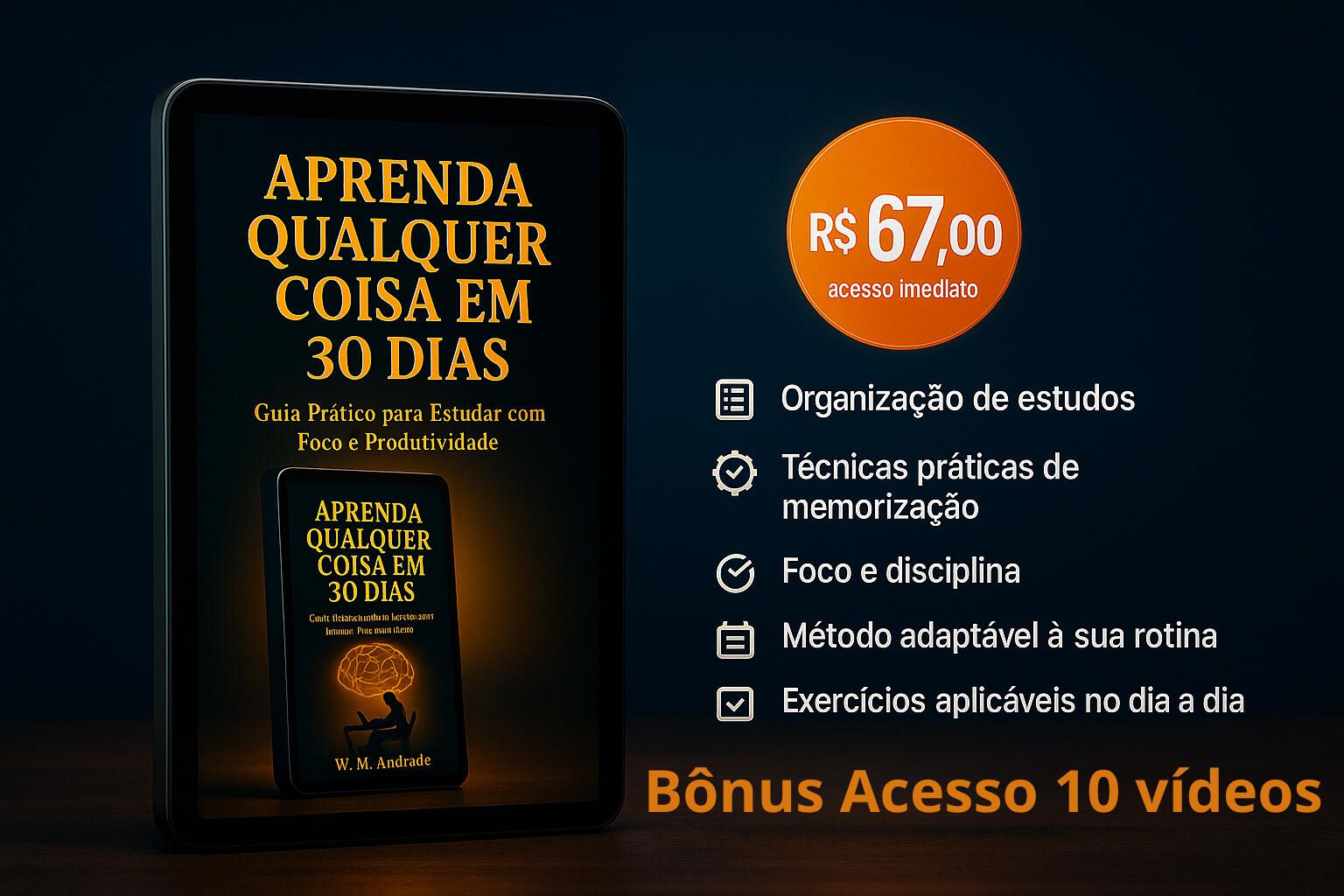 “Sempre tive dificuldade em manter a concentração. As técnicas do livro me ajudaram a organizar meu tempo e hoje consigo estudar sem me perder nas distrações.” – Ana“Nunca imaginei que pudesse aprender um idioma começando do zero. O método me deu clareza para estudar de forma leve e progressiva.” – Ricardo“O que mais gostei foi que não são apenas teorias, mas práticas que realmente posso aplicar no meu dia a dia.” – Lucas